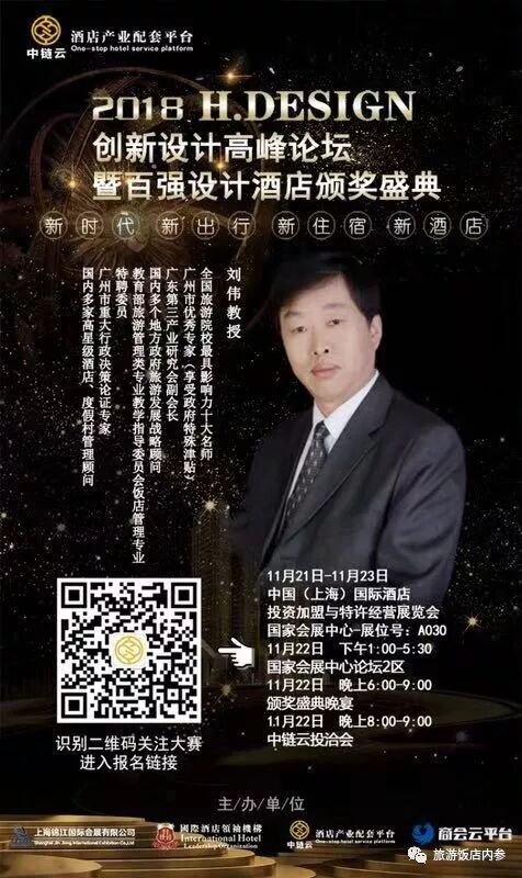 11月22日,2018H.Design 酒店创新设计大赛高峰论坛暨颁奖典礼在上海国家会展中心举办,刘伟教授应邀担任大赛首席评委,并为获奖酒店颁奖。